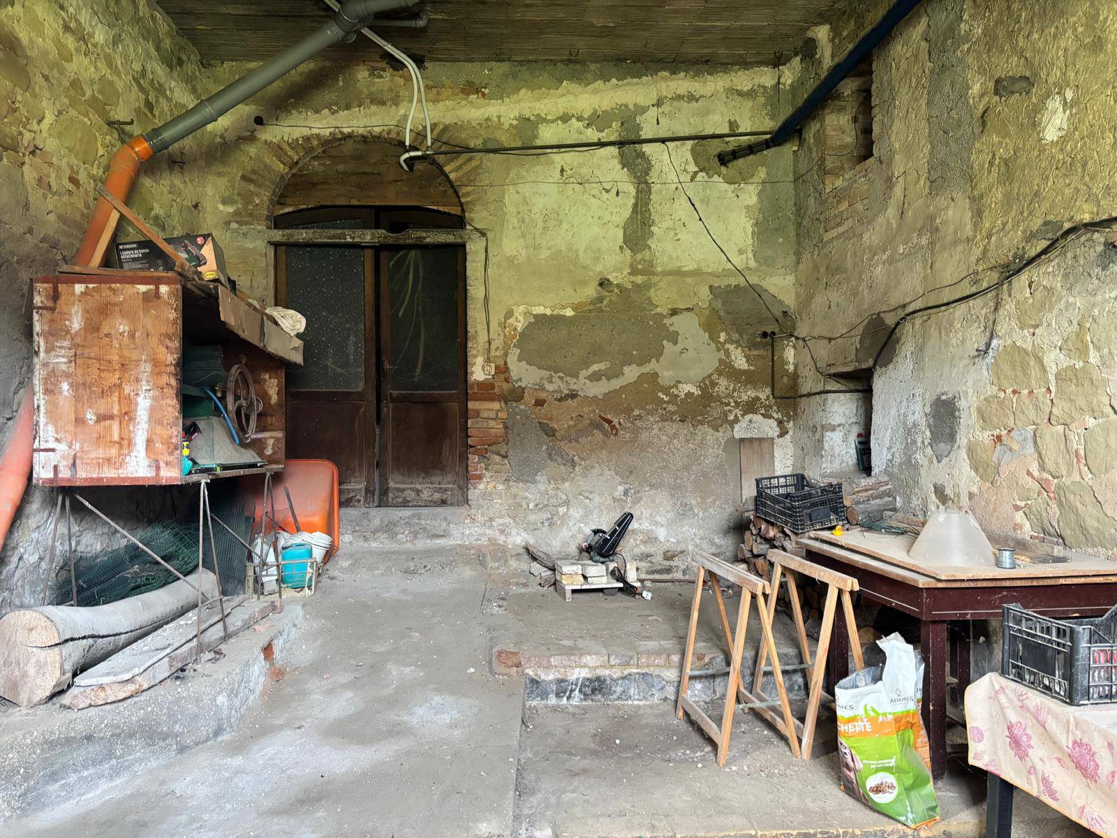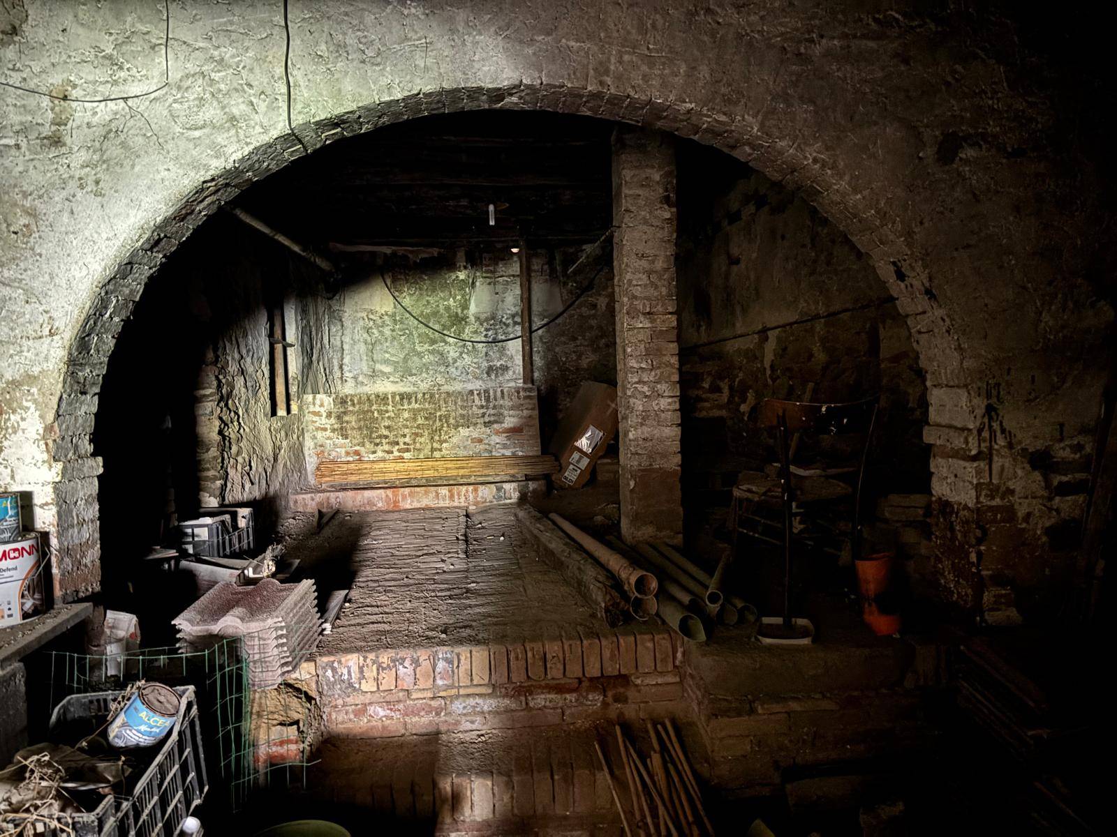 Tipologicamente la proprietà si sviluppa su più piani: piano primo sottostrada costituito da locali adibiti a fondaco, cantina e forno